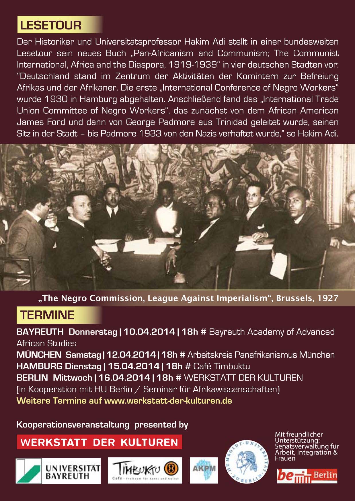 Humboldt-Universität zu Berlin | Kultur-, Sozial- und Bildungswissenschaftliche Fakultät | Institut für Asien- und Afrikawissenschaften | ㅤAFRIKA | Löschung (30.09.) | Bilder und Dokumente | Dokumente | Termine | Adi, Hakim 2 Adi, Hakim 2 digi flyer pan-africanism and communism-2.jpg image/jpeg Typ image/jpeg Dimension Abmessungen 1238x1746 Size Dateigröße 299.3 KB Herunterladen Bild in voller Größe anzeigen…