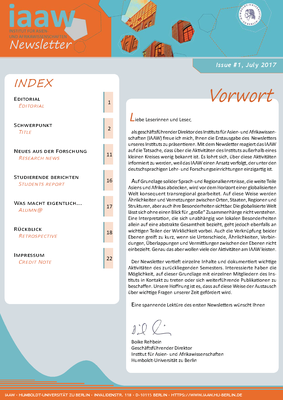 Humboldt-Universität zu Berlin | Kultur-, Sozial- und Bildungswissenschaftliche Fakultät | Institut für Asien- und Afrikawissenschaften | Bilder und Dokumente | 1. Newsletter IAAW, Juli 2017 1. Newsletter IAAW, Juli 2017 iaaw_newsletter_1.png image/png Typ image/png Dimension Abmessungen 283x400 Size Dateigröße 98.6 KB Herunterladen Bild in voller Größe anzeigen…